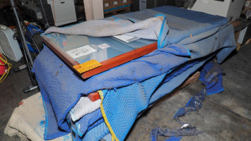 #453932 — Pallet of Wood and Glass Display Tack Boards