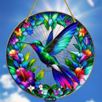 Hummingbird Suncatcher - 8-Inch Colorful Glass Window Hanging, Vibrant Animal-Themed Decoration *****