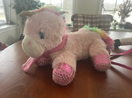 Large and Small Unicorn Plushes and Large Bunny Plush Toy