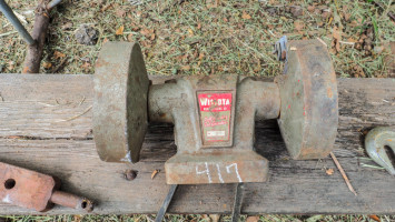 # 417 — Belt driven tool grinder attachment with no motor. 7 inch discs.