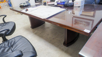 #522 — Glass top wood conference table