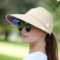Beaded Flower Decor Visor Hats Trendy Solid Color Summer Sun Hat Foldable UV Protection Visors BIN 5
