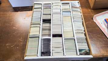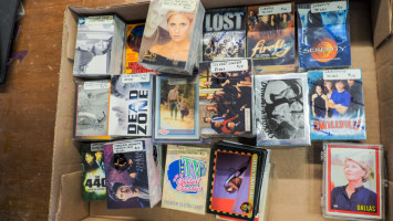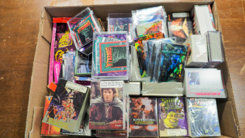 # 1386 — 5 boxes, 1 three ring binder, plus of Star Trek trading cafds