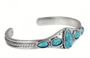 Vintage Bohemian Turquoise Hollow Geometric Bracelet | Adjustable Open Design