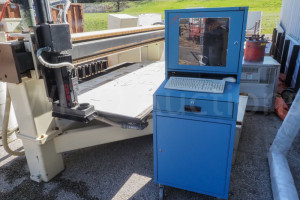 4x8’ table, 9” stroke, 9hp router motor, Fagor control unit, motion master blue computer station, 6 bits with holders, vice. BUYER MUST provide own loading equipment, item is too heavy for the forklift. Condition: Unknown. Has been sitting outside for 6+ months. Rust has formed on surfaces.