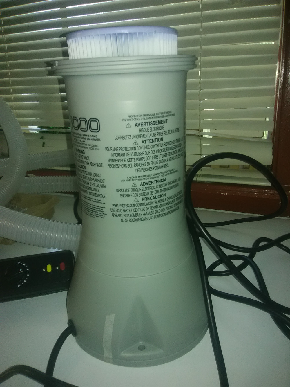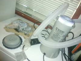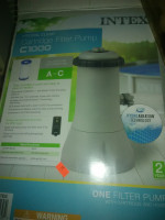 Open box Intex Krystal Clear Cartridge Filter Pump C1000 for above ground pools (store return?). I plugged it in and the pump light comes on on the switch, I did not test is further as you should not run these pumps without water in them and I no longer have an above ground pool to test it with. Pump comes with all the attachments needed (package of parts still sealed). 2 hoses, and the filter is already in it. etc. Uses type A or C filters. There is no pump manual but I'm sure it can be found online.