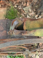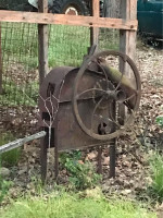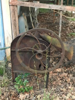 Circa 1900 Hand Crank Corn Sheller, I believe it is a McCormick-Deering? All pieces are there, except for the hand crank. Wheels are free, not locked up. Must be picked up 13 miles north of Bryan.