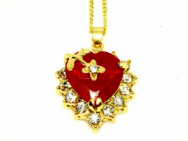 For your Consideration: ~ Lovely Necklace ~ Perfect Gift ~ Chain: White Gold Filled Snake 22 inches ~ Main Stone: Beautiful Ruby Red Crystal Heart Cut ~ Additional Stones: 15 Diamond White Crystals Round Cut ~ Design: Heart Rose ~ July Birthstone ~ Lovely Necklace Perfect For Any Occasion ~ *This Item Is New Never Worn* ~ Note: All items must be picked up by appointment*