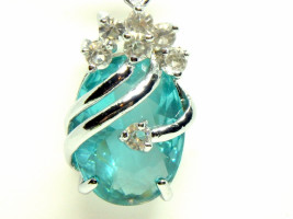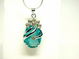 For your Consideration: ~ Lovely Necklace ~ Perfect Christmas Gift ~ Chain: Gold Filled Snake - 24 Inches ~ Pendant: Ribbon ~ Main Stone: A Brilliant Aquamarine Blue Crystal Oval Cut.~ Additional Stones: 7 Diamond White Crystals Round Cut ~ March Birthstone ~ *Lovely Necklace Perfect For Any Occasion* *This Item Is New Never Worn* Note: All items must be picked up by appointment