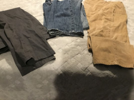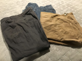 38 x 34 Tan pair Alfani, jeans Pelle Pelle Denim, Grey pair English Laundry