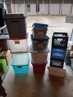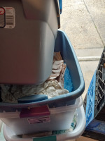One is full of packing paper and one if full of blankets and sheets for wrapping for fragile items. These are all consolidated and stacked on the back shelf and you may need to slide a box out of the way to access.