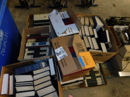 A pallet of reference books, topics vary, including engineering and encyclopedias.