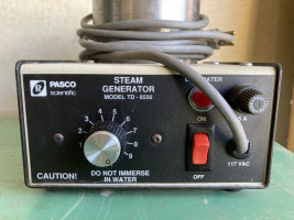 Pasco Scientific TD-8556 Steam Generator brings 3/4 of a liter of water to boil in 10 minutes and provides continuous steam at up to 10 gram/min. Variable Power (0 - 400 watts): Adjustable steam flow. Extra-wide Base: Stable, hard to tip over.Internal Electric Heater: No open flame, no exposed coils. Low Water Warning LightWorking condition. Working condition.
