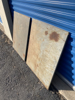 Steel doors, reinforced on back, good weight, good for a table top. 26.25 x 34 x .75