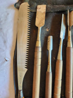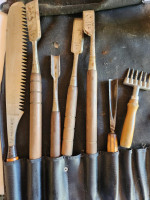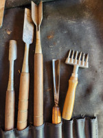 This lot includes ice carving tools from JB Prince. There is an ice saw, straight chisels, rounded and V chisels.