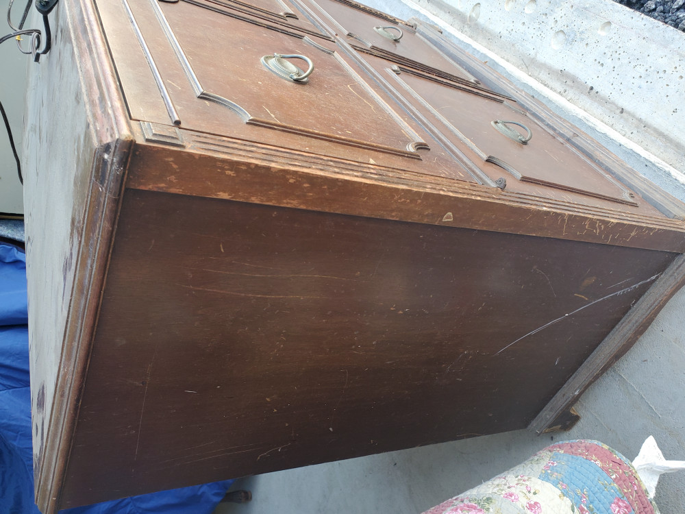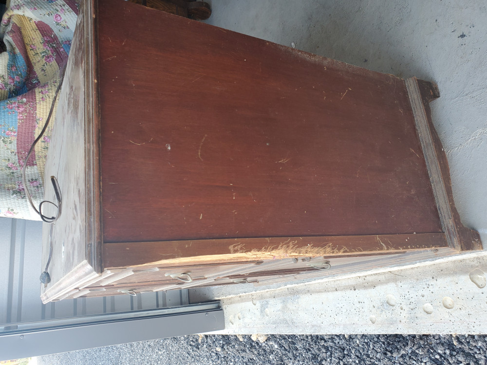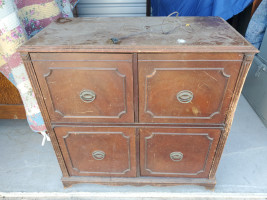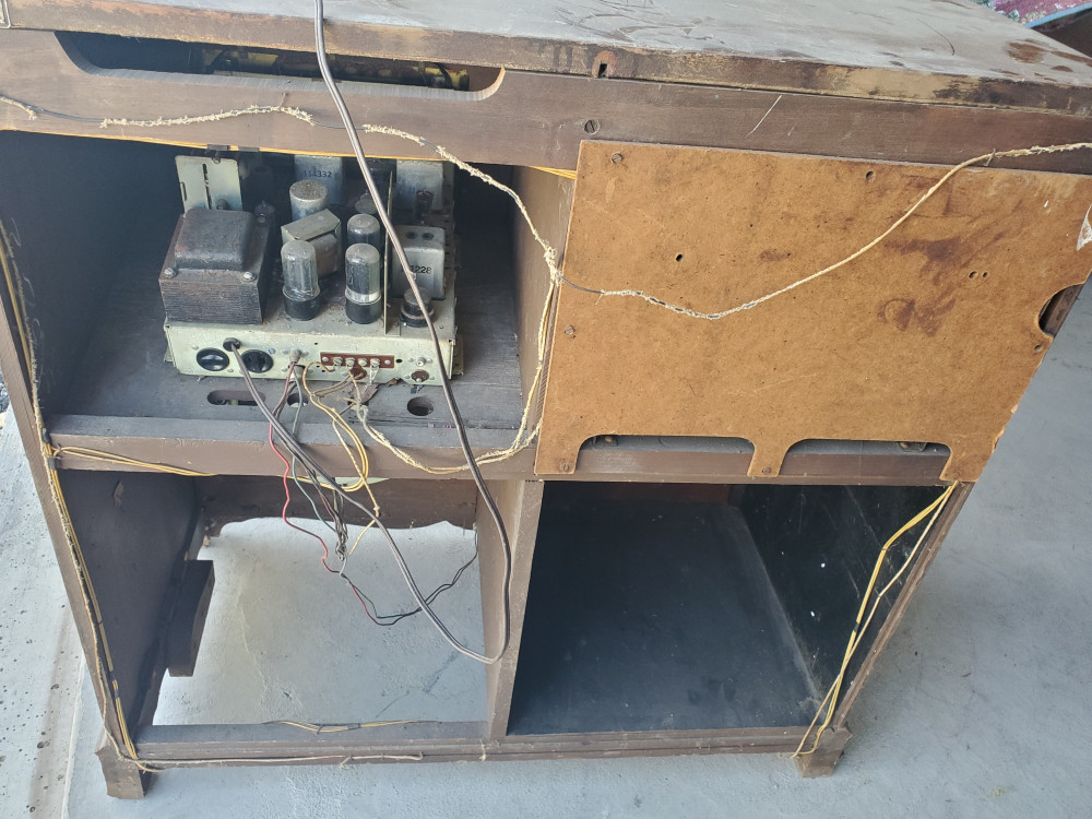 Item is being relisted due to nonpayment of prior winning bidder. - Antique radio with phonograph. Radio appears to be complete and untested. One corner has deep scratches which can be seen in the photos.