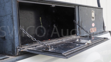 5.4 L gas motor, automatic transmission, AM/FM, radio, AC, cloth and vinyl seats. Rawson Koenig toolboxes, ladder rack, Tommy Gate 1300 pound rear lift. Condition: Drove to location, AC blows, cold, Drivers rear door won’t open, tailgate lift was partially down when they drove it over but seems to work now. *The University of Texas at Austin makes no claim of physical or mechanical condition, and functionality of items available through SWICO Auctions. All items are sold “As is, where is”. It is the sole responsibility of the bidder to physically inspect items before bidding and assume all risk. Photos and descriptions are for preview only. All sales are final and no refunds will be issued. Please refer to the SWICO “Terms of Service” in which you have agreed to.
