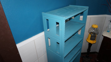 For Your Consideration: Nice Solid Wood Handmade Piece Of Furniture. Can Be Used for A Small Entertainment Center, Occasional Shelf, Book Shelf, Knick Knack Shelf. Painted Teal, However Would be Easy to Repaint to Match Your Decor.