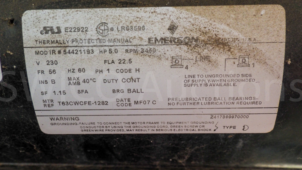 135psi, Emerson 230v, 1 phase, 5hp motor, 60 gallon tank Condition: Not hooked up, unknown, probably no working