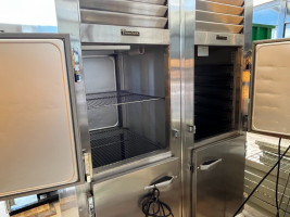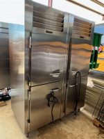 115 volt, one side has tray slides and is food warmer, other side in refrigerator, 31”x69”x83”, working when removed from service,