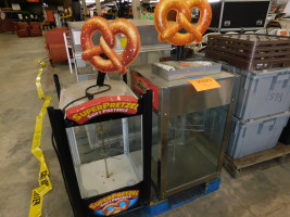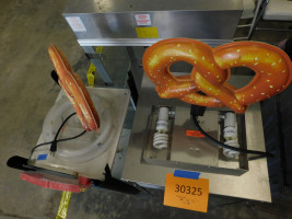 2 soft pretzel warmers manufactured by SuperPretzel and SuperPretzel Bavarian from the Frank Erwin Center. Dimensions of the Bavarian model are 19” wide 19” deep and 30” tall. Dimensions of the smaller SuperPretzel model are 17” wide 18” deep and 27” tall. Overall operational capabilities of each warmer are unknown. Both show signs of normal wear and tear. Pallet pictured not included.