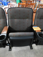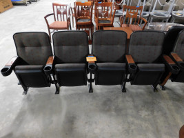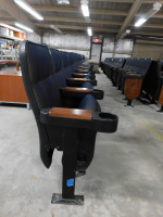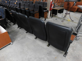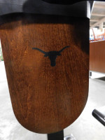 A section of seating from the Frank Erwin Center suites containing 4 longhorn-themed stadium seats. All together the section is 91” long, with each individual seat standing 37” tall and 20” deep. Each seat shows signs of normal wear and tear.