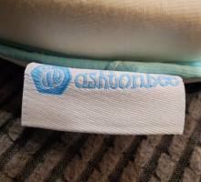 AshtonBee head shaping pillow. Memory foam. New in package. Helps prevent flat head syndrome in babies 0-6 mths. Organic cotton.