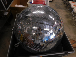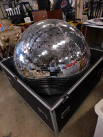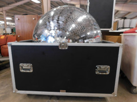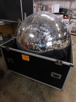 A very large disco ball measuring 4’ in diameter acquired from the Frank Erwin Center. Comes in a rolling protective case that measures 52” wide 52” deep and 58” tall. Shows normal signs of wear and tear. Both the disco ball and case are extremely heavy and will need multiple people to lift.