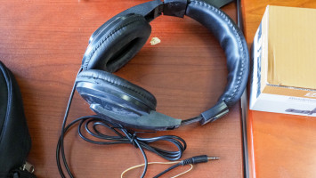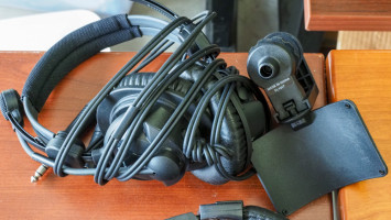 Sennheiser HMDC 27 with 1/4” and XLR plugs. and an unknown headset. Plus 2 headphone holders