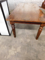 Two large rustic wooden dining tables, dark brown in color, with a rustic finished wooden top, and decorative legs, both show signs of wear and tear, good condition, dimensions 83” long x 39” wide x 31” tall.