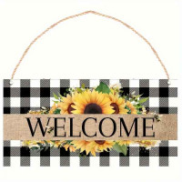 Welcome Home Sunflower Wooden Door Sign - Horizontal Wall Art Decor Great Deals and Steal