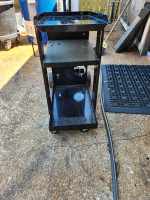 This is a Harbor Freight Welding Cart that I added a ring on the back to help stabilize the gas tank. Still in really good condition. I got a second unit and upgraded to a different cart to hold both units. The cart is 28 inches tall, 15 inches wide and 27 inches deep.