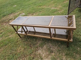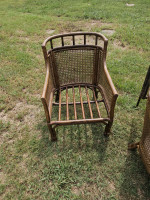 Two Wicker Chair's and a table with removable glass top. Good shape coushin need a wash