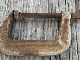 Eight (8) C-Clamps In Working Condition. Six are labeled made in USA, two are not, the Craftsman 6” and the smallest Green 3”. Two 6”, Two 4”, Four 3” C-Clamps.