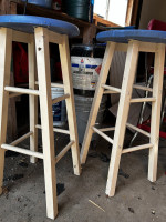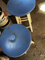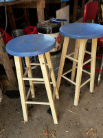 Shop or kitchen barstools. Bottoms/bases are heavy metal. Tops are wood, paint your color!
