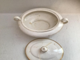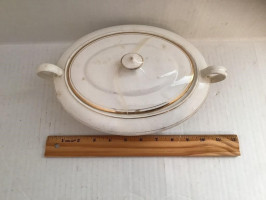 Antique Gold trim lidded casserole dish: 11X8X4 Great Deals and Steal