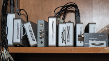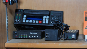 2 shelves of video production equipment (#451355) University Of Texas At Austin
