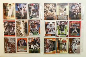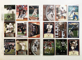 A lot of 90 different Texas Longhorns Sport cards in protective sheets.