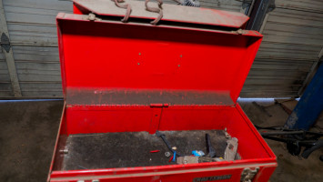 36 x 19 561 inches, two drawers, two drawer craftsman toolbox, steel wheels, light, electrical cord