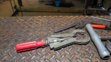 Ridgid 2-4” pipe cutter, tubing flare tool, 12” pipe wrench, 6” pipe wrench, tubing cutter