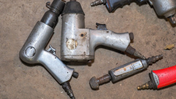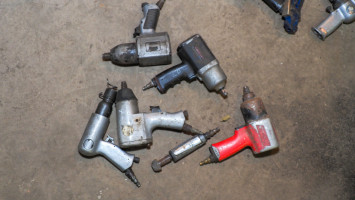 4 impact guns, air hammer, grinder, Condition: Working, 2 of the impact guns start when you plug air into them