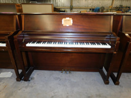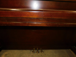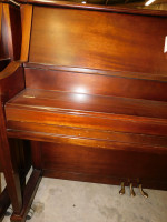 Sohmer & Co. New York 225209 Upright Piano Quarter-Sawn Rock Maple interior with wood finish, three brass pedals, rolling wheels, and sliding fallboard cover. No piano stool. UT staff will not be available for loading. Dimensions: 58” x 12” x 46.”