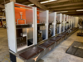 !!READ CAREFULLY!! University of Texas Longhorn Football Lockers (2017-2024 seasons) All lockers are built-in units that have been removed from the locker room. All lockers are custom built with ventilation systems, LED Lighting, and cooling fans. Some units may have broken or missing parts, lighting issues, etc. All lockers are un-finished on sides and backs to accommodate built-in features. Winning bidders are solely responsible for pick-up, removal, and shipping. No disassembly on the premises allowed.