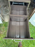 Dark brown two drawer file cabinet with adjustable divider