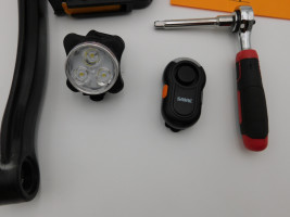 A fixed allen head socket, bike light, a pedal, and a safety alarm. *The University of Texas at Austin makes no claim of physical or mechanical condition, and functionality of items available through SWICO Auctions. All items are sold “As is, where is”. It is the sole responsibility of the bidder to physically inspect items before bidding and assume all risk. Photos and descriptions are for preview only. All sales are final and no refunds will be issued. Please refer to the SWICO “Terms of Service” in which you have agreed to.