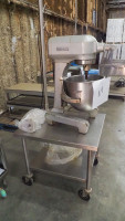 Includes dough hook and paddle, A-20ss bowl. 110v. Rolling table is 25 x 25 x 26“ with stainless pole for attachments Condition: Unknown, has been in storage for a while