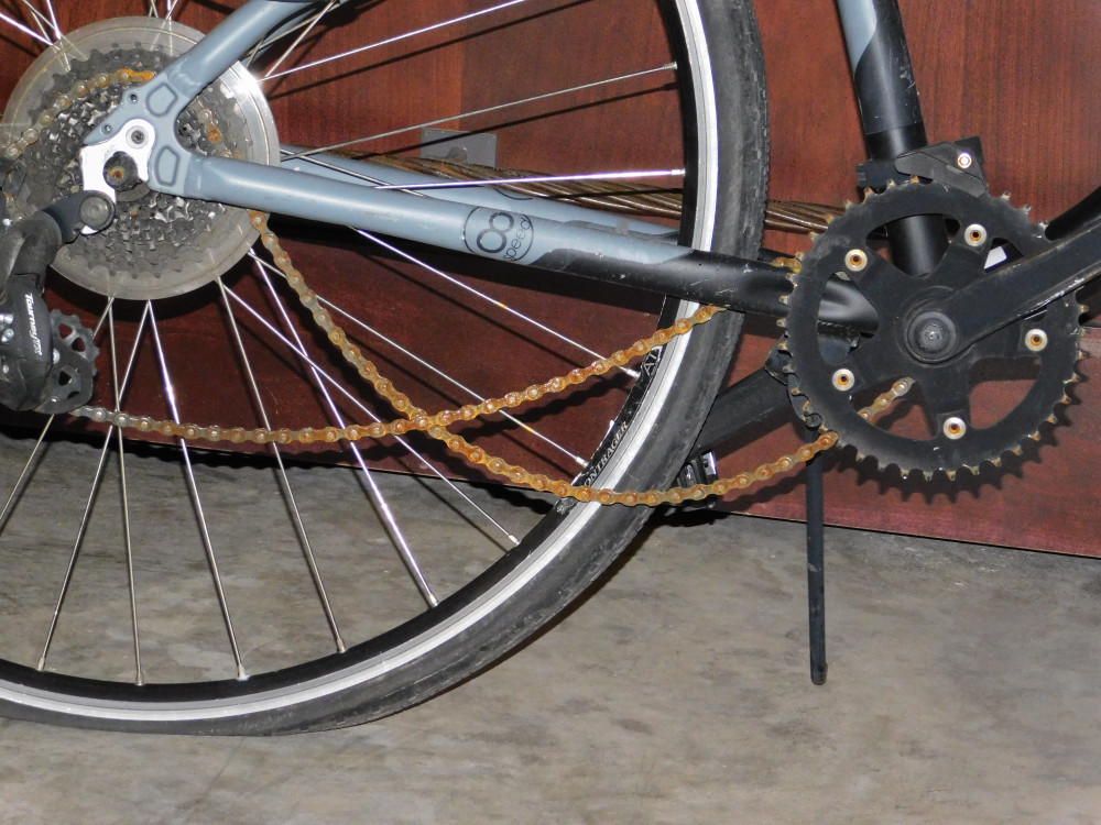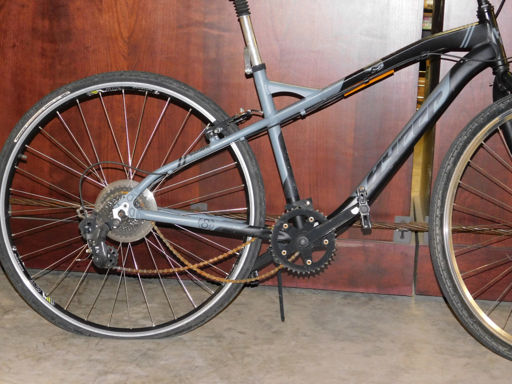 Hyper 700C Urban Bike - 8 Speed. Rusty, loose chain, disconnected rear wheel.