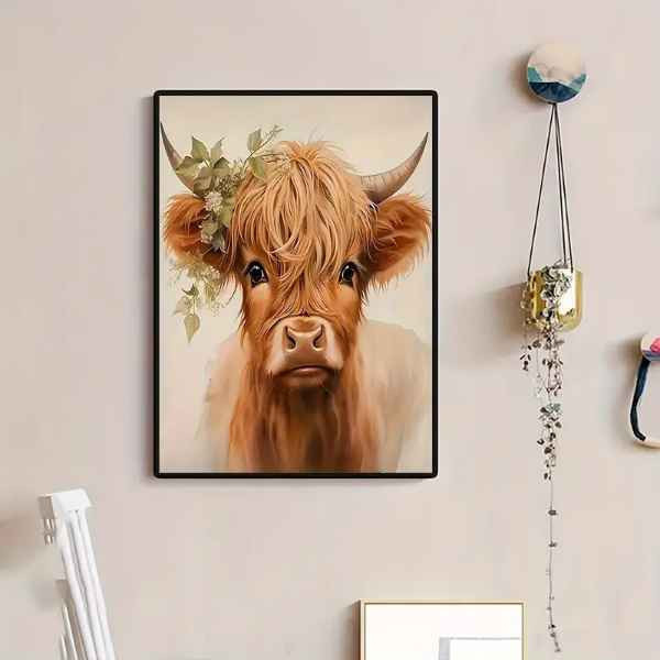 1pc Highland Cow Canvas Art Print, 12x12 Inch Frameless Wall Hanging Bin 11 Great Deals and Steal