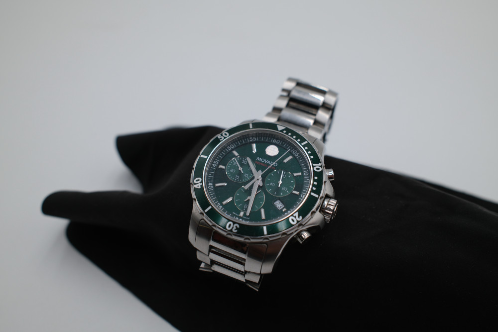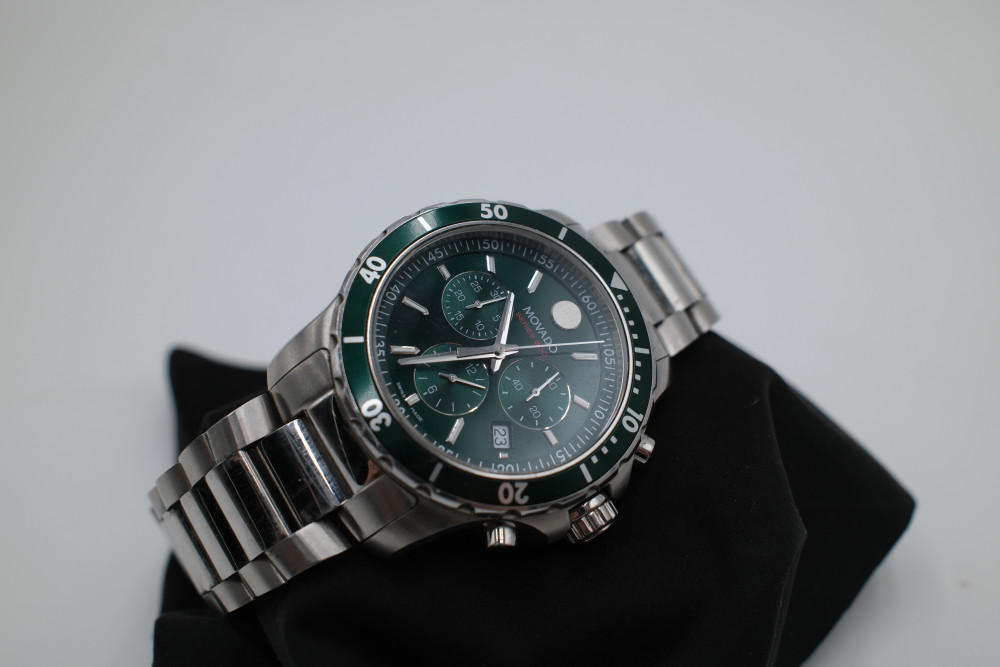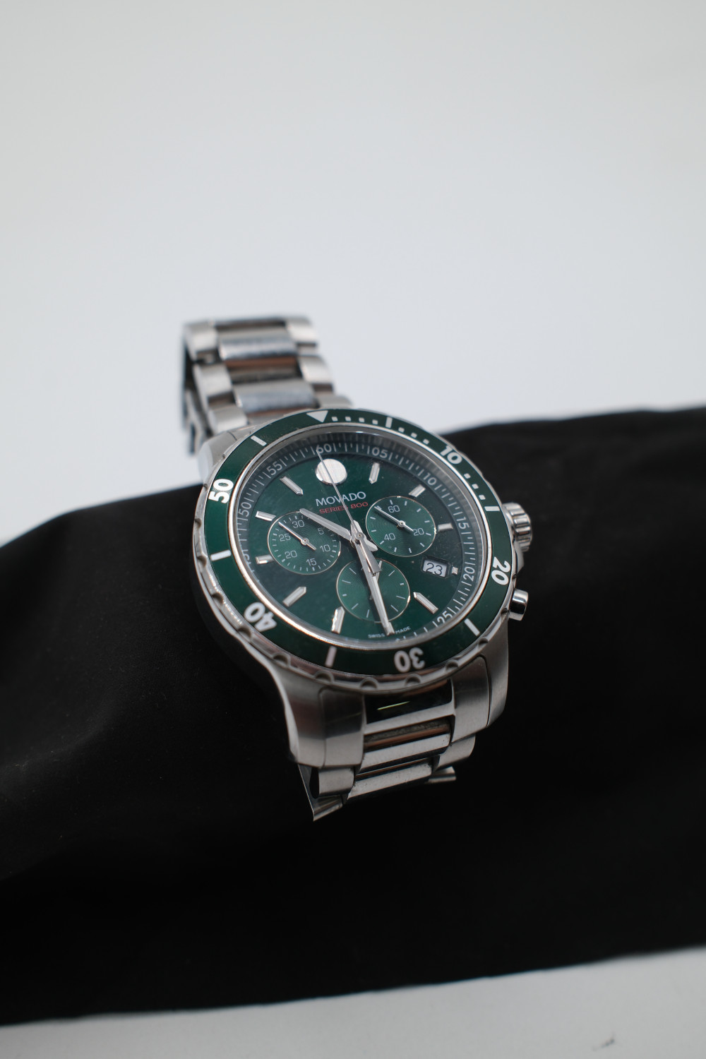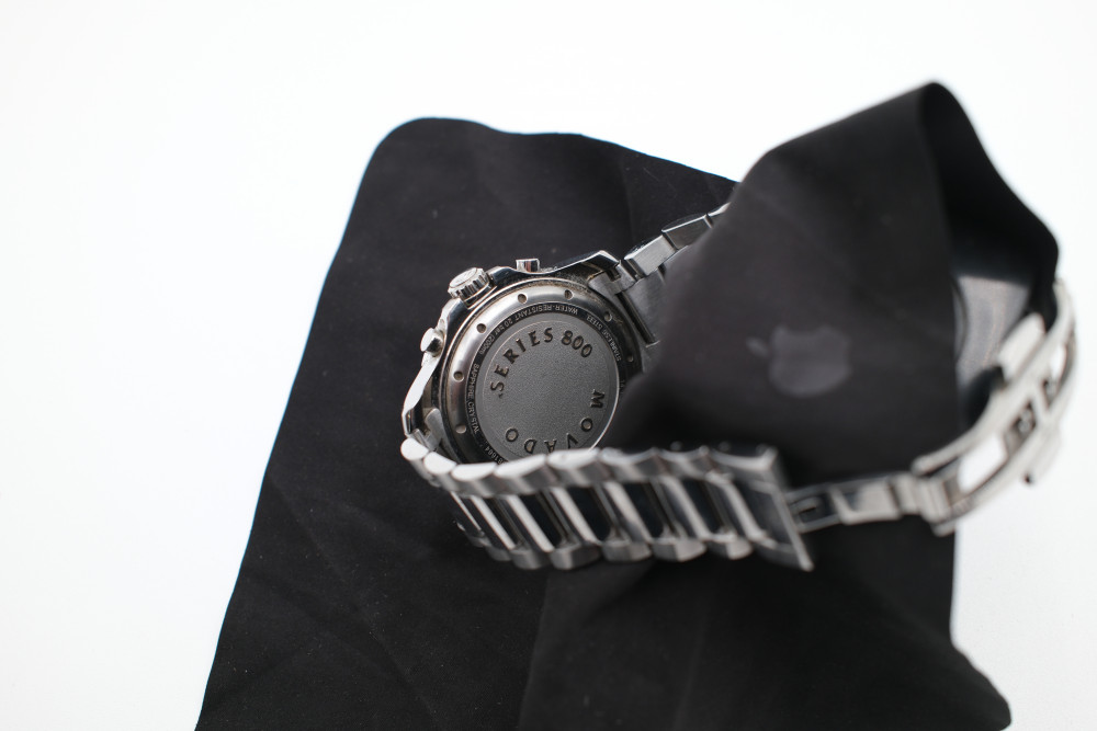 Movado Men's Series 800 Chronograph Watch, some finish wear to dial and band, usual wear and tear.