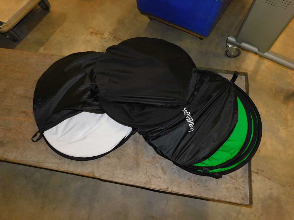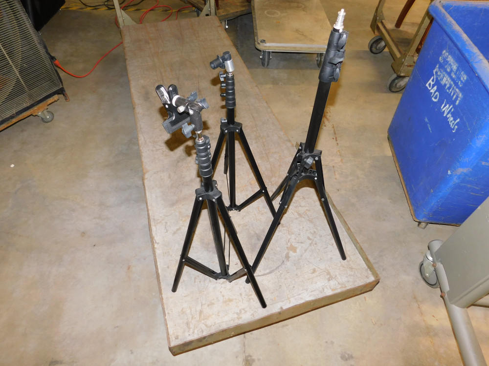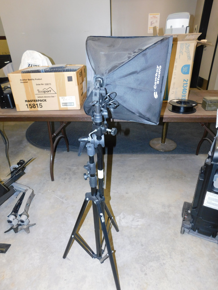 Cowboy Studio Light Set - Untested, no power cords. Includes various stands and color filter cloths.
